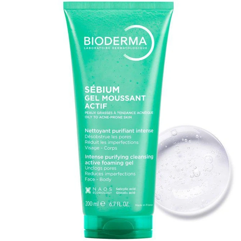 Bioderma Sébium Gel Moussant Actif är en skummande rengöringsgel som kombinerar två utjämnande och aktiva ingredienser (salicylsyra och glykolsyra). Formulan rengör intensivt utan att torka ut huden och respekterar dess naturliga balans. Rengöringsproduktens geltextur förvandlas till ett skum under användning, vilket lämnar huden mjuk och med en behaglig känsla. Resultat: hjälper till att täppa igen tilltäppta porer och minska ojämnheter och glänsande hud. Sébium Gel Moussant Actif innehåller det patenterade DAF™*-komplexet, som ökar hudens toleranströskel. Produkten har testats under dermatologisk kontroll och har god hudtolerans. Fördelar: - Intensiv rengöringsgel - Reducerar föroreningar - Rengör intensivt - Hjälper till att lösa tilltäppta porer - Lämnar huden mjuk - Lämplig för fet hud och oren hud - Testad under dermatologisk kontroll Användning: - Applicera på fuktig hud - Arbeta in rengöringsgelen till ett skum - Skölj noggrant och torka huden försiktigt - Använd morgon och/eller kväll