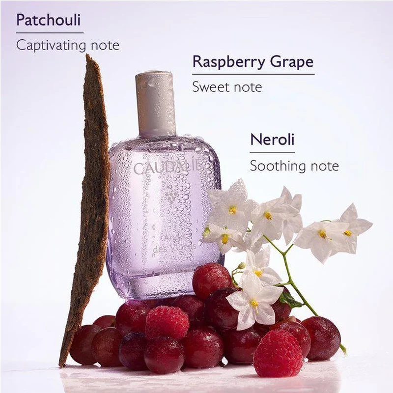 Caudalie Agne des Vignes Fresh Fragrance Eau Fraíche Ange des Vignes är Caudalies första lätta doft med både sensuella och mousserande noter. Den varma chypredoften kombinerar fruktiga noter av hallondruva med ljusa inslag av neroli och omfamnande patchouli. Doften är förförisk och sensuell och fångar den underbara fräschören som finns mellan himlen och vinrankorna. Formulan består av 89 % ingredienser av naturligt ursprung och innehåller inga artificiella färgämnen. Upptäck även Ange des Vignes i Caudalies kroppskollektion och förläng doftupplevelsen med samma fräscha, fruktiga och sensuella signatur i din dagliga kroppsvårdsrutin.