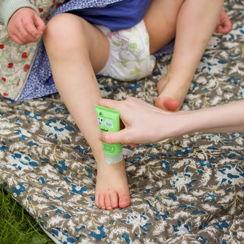Faaborg Pharma Relief Green For Mosquito Bites är en klådstillande och självrengörande kräm för alla typer av irritation, sveda och klåda på huden. Denna kräm är berikad med naturens egna aktiva ingredienser, som minskar klåda, sveda och svullnad efter bland annat insektsbett, eldflugor och nässlor. Syricalm ökar fukten i huden och minskar klåda, sveda och rodnad efter insektsbett, samt efter kontakt med nässlor och eldflugor. Niacinamid (vitamin B3) stärker hudbarriären, lugnar huden och minskar rodnad och irritation. Krämen är parfymfri. Bör inte användas av barn under 2 år utan läkares recept. Fördelar: - Kräm - För alla typer av irritation, sveda och klåda på huden - Idealisk för t.ex. insektsbett, brandmän och nässlor - Lindrar klåda, sveda, svullnad och rodnad - Självrengörande - Ökar fukten i huden - Stärker hudbarriären - För vuxna och barn över 2 år - Utan parfym Användning: - Applicera ett tunt lager på de drabbade områdena 2-3 gånger dagligen eller vid behov - Obs: Bör inte användas av barn under 2 år utan läkares inrådan Ingredienslista: Aqua (Vatten), Paraffinum Liquidum (Fettgivande), Niacinamid (Vitamin B3), Cetearylalkohol (Stabilisator), Cetylalkohol (Emulgeringsmedel), Glycerylstearat (Emulgeringsmedel), Peg-75 Stearat (Emulgeringsmedel), Natriumbensoat (Konserveringsmedel), Steareth-20 (Fettgivande och Emulgerande), Ceteth-20 (Emulgeringsmedel), Kaliumsorbat (Konserveringsmedel), Natriumcitrat (pH-justerande), Phragmites Kharka-extrakt (Klådstillande), Poria Cocos-extrakt (klådadämpande), Citronsyra (pH-justerande).