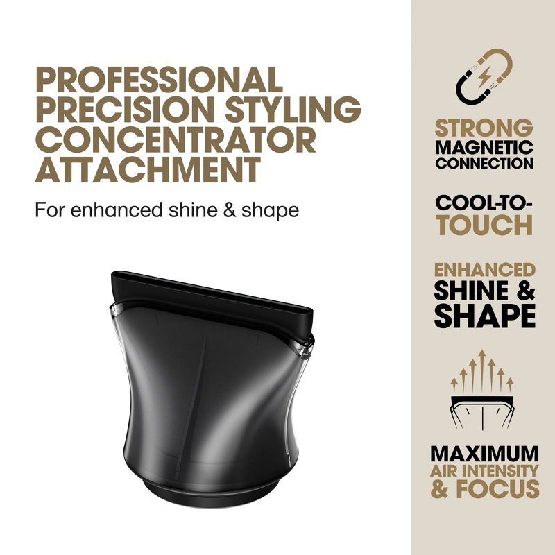 ghd Pro Precision Styling Concentrator är ett munstycke för din hårtork som ger ett koncentrerat luftflöde. Med ett smalt professionellt 66 mm utlopp levererar detta hårtorkmunstycke ett högtrycksluftflöde som förbättrar formen, ökar glansen med 64 % och ger 3x3 mer lyft vid rötterna, vilket gör det idealiskt för precisionsstyling med professionella resultat. Helt kompatibel med ghd Speed hårtork, är det ditt nya måste för den perfekta föningen. Dess exakta varmluftsteknik fokuserar värmen där du behöver den som mest, vilket ger ett varmare luftflöde som ger definition och strålande glans till varje look. Koncentratormunstycket förblir svalt vid beröring tack vare intelligent ghd halo™ dual-airflow-teknik, som riktar kall luft för att hålla ytan bekväm under styling. Det transparenta yttre lagret framhäver den banbrytande ghd halo™ dual-airflow-tekniken, medan den släta, konturerade inre designen säkerställer ett kraftfullt, oavbrutet luftflöde för maximal kontroll. Utrustad med en stark magnetisk anslutning sitter koncentratorn säkert på plats, men möjliggör snabba och enkla justeringar, så att du smidigt och bekvämt kan byta frisyr. För dig som söker precision och glans på expertnivå är ghd professional styling concentrator ditt oumbärliga stylingverktyg. Detaljer: - Munstycke för ghd Speed - Koncentrerat luftflöde - Ökar hårets glans - Perfekt för precisionsstyling - Magnetisk anslutning