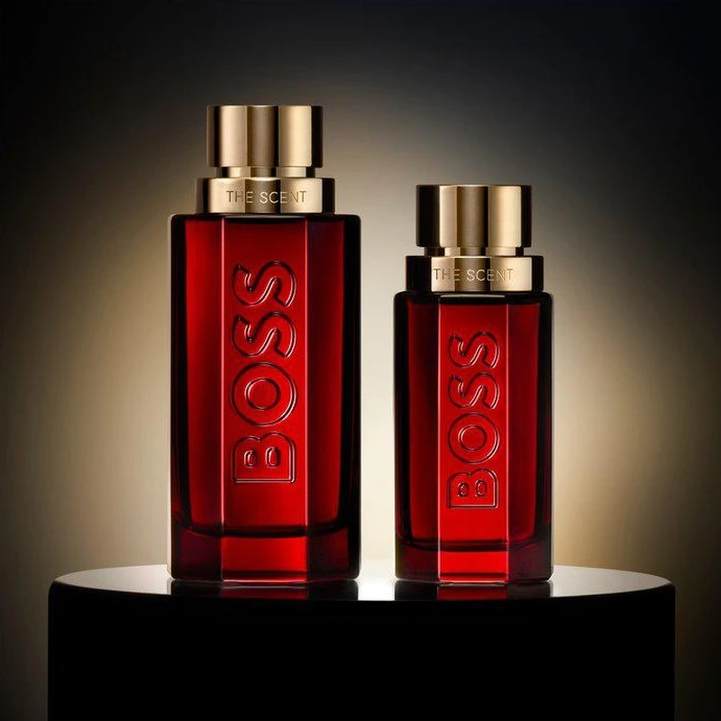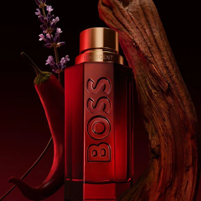 Hugo Boss The Scent Elixir Parfum är en intensiv och särskilt maskulin parfym. Elda sinnena med den förföriska BOSS The Scent Elixir Parfum Intense for Him, en djup, mycket koncentrerad tolkning av den ursprungliga doften BOSS The Scent for Him. Detta bärnstensfärgade och träiga Elixir inleds med en explosion av stark röd piment, som frammanar en komplex, kryddig doft full av karisma. I hjärtat av denna herrdoft, en livlig doft av lavendel absolut – hämtad från Provence – fängslar omedelbart med sin livliga energi. Denna sofistikerade doftkomposition är berikad med en mjuk, djup och träig bas av kaledonskt sandelträ. Klädd i samma djupröda lackerade glas som sin feminina motsvarighet, den ikoniska BOSS The Scent-flaskan reflekterar intensiteten hos den förföriska doften inuti. Flaskan är avslutad med ett lock i en varm gyllene nyans med en lyxig satinfinish som reflekterar de glänsande metalliska detaljerna på förpackningen.