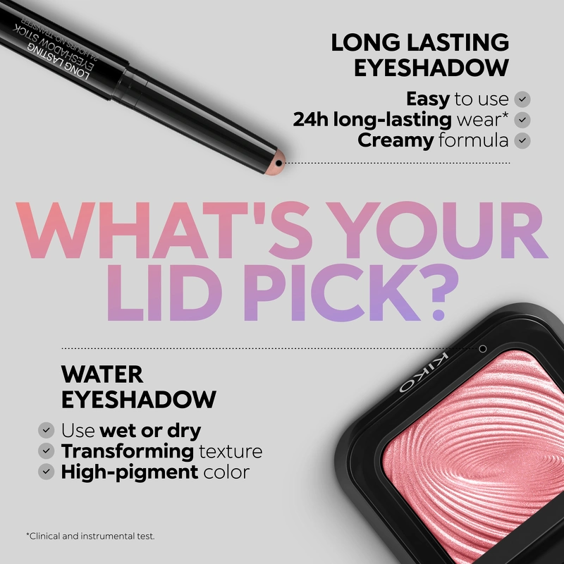 KIKO Milano Long Lasting Eyeshadow Stick - 07 Vintage Rose är en ögonskuggspenna med en krämig formula och extrem stadga, vilket gör det enkelt att framhäva dina ögon och skapa en look som håller länge. Ögonskuggsformulan berikad med arganolja passar perfekt på ögonlocket, där den håller i upp till 24 timmar och inte kladdar. Den krämiga och superbekväma konsistensen är lätt att applicera och blanda, och låter dig variera din look med allt från en mycket intensiv färg till en mer tonad, halvtransparent nyans. Med sitt praktiska stift och runda form är denna ögonskugga perfekt att använda när du är på språng. Denna ögonskugga finns i många färger och med olika finish, så det är bara att utforska urvalet och hitta de du gillar bäst! Fördelar: - Ögonskuggspenna - Passar perfekt på ögonlocket - Metallisk finish - Bekväm, krämig konsistens - Lätt att applicera och blanda - Kladdar inte - Varar i upp till 24 timmar - Byggbar färgintensitet - Perfekt att ta med sig på språng - Oftalmologiskt testad Användning: - Använd över ögonskuggsprimer för bästa resultat, använd KIKO Milano Neutral Eye Base - Applicera ögonskugga direkt på ögonlocket - Blanda försiktigt ögonskuggan med en blandningsborste - Se till att locket är ordentligt påsatt efter användning Ingredienslista: METYLTRIMETIKON, GLIMMER, TRIMETHYLSILOXYSILIKAT, SYNTETISK VAX, LAUROYLLYSIN, POLYMETHYLSILSESQUIOXAN, STEAROXYMTIKON/DIMETIKON-KOPOLYMER, OKTYLDODEKANOL, KILA, POLYETYLEN, COPERNICIA CERIFERA VAX (COPERNICIA CERIFERA (CARNAUBA)) VAX/CIR E DE CARNAUBA), KAPRYL-/KAPRINTRIGLYCERID, POLYHYDROXISTEARINSYRA, DISTEARDIMONIUMHEKTORIT, MIKROKRISTALLINT VAX (CERA MICROCRIS TALLINA/CIRE MICROCRISTALLINE), PENTAERYTRITYL TETRA-DI-t-BUTYLHYDROXYHYDROCINNAMAT, ARGANIA SPINOSA KÄRNOLJA, PROPYLENKOLAT, ISOSTEARINSYRA, LECITIN, POLYGLYCERYL-3 POLYRICINOLEAT, TENNOXID, SYNTETISK FLUORFLOGOPIT, KALCIUMTITANIUMBOROSILIKAT, KALCIUMALUMINUMBOROSILIKAT, KALCIUMNATRIUMBOROSILIKAT, ALUMINIUMKALCIUMNATRIUMSILIKAT, ALUMINIUMOXID, DIKALCIUMFOSFAT, CI 1914 0 (GUL 5 SJÖ), CI 77891 (TITANDIOXID), CI 77491- CI 77492 - CI 77499 (JÄRNOXIDER), CI 77400 (BRONSPULVER), CI 77400 (KOPPAR PER PULVER), CI 77000 (ALUMINUMPULVER), CI 77510 (JÄRN(III)FERROCYANID), CI 42090 (BLÅ SJÖ 1).