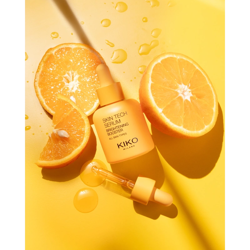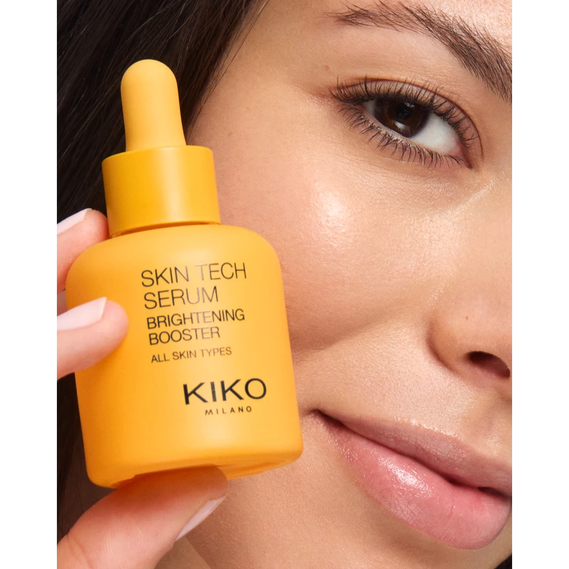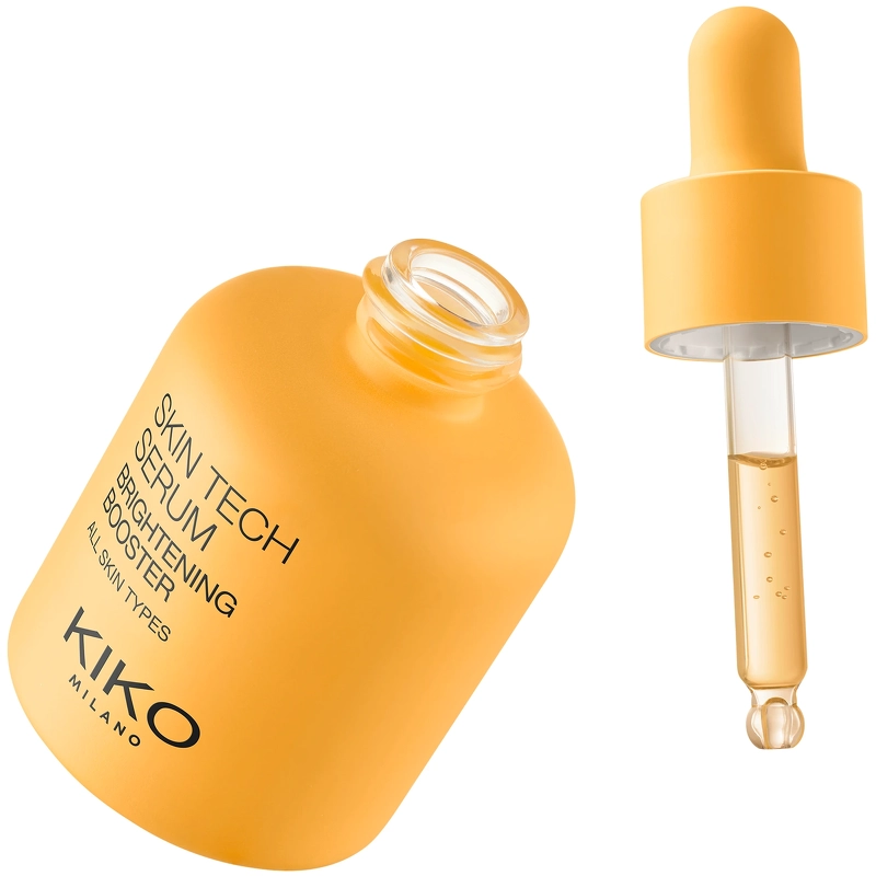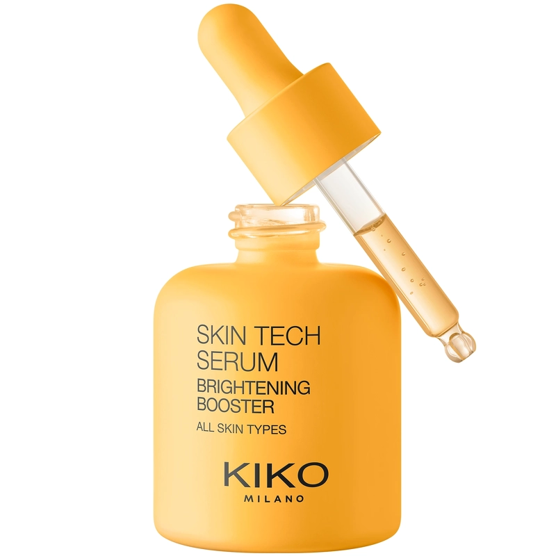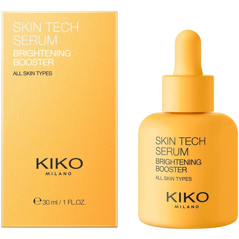 KIKO Milano Skin Tech Serum Brightening Booster är ett uppljusande serum som ger omedelbar lyster och hjälper till att främja en jämnare hy. Det är lämpligt för alla hudtyper och rekommenderas särskilt för glåmig och matt hy. Med kraften av niacinamid, italienskt apelsinextrakt och C-vitamin gör detta koncentrerade ansiktsserum huden strålande och len. Perfekt för att minska uppkomsten av mörka fläckar och missfärgningar. Med varje applicering får ansiktet mer lyster, mörka fläckar förbättras och huden känns mjukare och lenare. Kliniskt testade resultat: - +39 % lyster på 30 minuter* - -15 % mörka fläckar och missfärgningar* Serumet har en lätt och behaglig konsistens som absorberas omedelbart och inte lämnar huden med en fet eller klibbig känsla. Pipetten säkerställer bekväm och exakt dosering utan spill. Instrumentellt kliniskt test. Instrumentellt kliniskt test efter 56 dagar. Fördelar: - Serum - Ljusar upp och jämnar ut hudtonen - Ger lyster och lyster - Minskar uppkomsten av mörka fläckar och missfärgningar - Gör huden len och mjuk - Lämplig för alla hudtyper, särskilt rekommenderas för glåmig och matt hud - Lätt och behaglig konsistens - Absorberas snabbt - Inte fet eller klibbig - Pipett för praktisk och exakt dosering utan spill - Dermatologiskt testad Användning: - Använd på rengjord och torr hud - Applicera några droppar serum på ansikte och hals - Massera försiktigt in i huden med cirkulära rörelser tills serumet är helt absorberat - Avsluta med dag- eller nattkräm - Använd dagligen morgon och kväll Ingredienslista:* Fördelar: -Ljusgörande effekt ger en jämnare hy - Lätt, silkeslen konsistens som känns behaglig på huden - Absorberas direkt, icke-fet, icke-klibbig - Huden ser strålande ut och känns lenare efter varje användning - Lämplig för alla hudtyper, särskilt rekommenderas för glåmig hud - Droppapplikator. Praktisk, exakt, avfallsfri – Utformad för daglig användning, varje droppe av detta serum innehåller den bästa skönhetsinnovationen för din hud. Med varje applicering kommer ditt ansikte att lysa, mörka fläckar förbättras och din hud kommer att kännas mjuk. SÅ HÄR APPLICERAR DU ANSIKTSSERUMET Applicera några droppar serum på ditt rengjorda ansikte och hals innan du använder din vanliga KIKO MILANO-kräm och smink – både morgon och kväll. – Massera försiktigt med cirkulerande rörelser tills serumet har absorberats helt. NÄR SKA DU APPLICERA ANSIKTSSERUMET? Applicera dagligen – morgon och kväll – på ren, torr hud innan du applicerar din kräm.