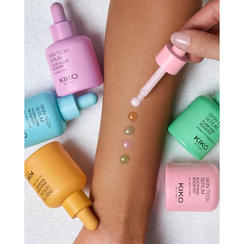 KIKO Milano Skin Tech Serum Purifying Booster är ett serum som rengör och balanserar din hud i ett enda steg. Det kan användas för alla hudtyper, men är särskilt lämpligt för kombinerad och fet hud. Detta koncentrerade ansiktsserum kombinerar laktobionsyra, italienskt basilikaextrakt och biosuccinsyra för att hjälpa till att rengöra huden från orenheter, förbättra dess utseende och minska glans. Huden ser renare, slätare, mer sammetslen och frisk ut efter varje användning - den renhet din hud längtar efter, i varje droppe. Kliniskt testade resultat: - -15 % överskott av talg* - Ojämnheter minskade synbart hos 95 % av de frivilliga Serumet har en lätt och behaglig konsistens som absorberas omedelbart och inte lämnar huden med en fet eller klibbig känsla. Pipetten säkerställer bekväm och exakt dosering utan spill. Fördelar: - Serum - Rengör orenheter - Förbättrar hudens utseende - Minskar överflödigt talg och glans - Lämplig för alla hudtyper, särskilt rekommenderad för fet och kombinerad hud - Lätt och behaglig konsistens - Absorberas snabbt - Inte fet eller klibbig - Pipett för praktisk och exakt dosering utan spill - Dermatologiskt testad Användning: - Använd på rengjord och torr hud - Applicera några droppar serum på ansikte och hals - Massera försiktigt in i huden med cirkulära rörelser tills serumet är helt absorberat - Avsluta med dag- eller nattkräm - Använd dagligen morgon och kväll - Innehåller AHA, vilket kan öka hudens ljuskänslighet. Använd därför solskyddsmedel under dagen så länge du använder denna produkt och i en vecka efter användning. Ingredienslista:** AQUA (VATTEN/EAU), PROPANEDIOL, LAKTOBIONSYRA, GLYCERIN, BÄRNSTENSSYRA, POLYAKRYLAT-KORSPOLYMER-6, NATRIUMHYDROXID E, HYDROXYACETOFENON, 1,2-HEXANDIOL, PARFYM (DOFT), TETRANATRIUMGLUTAMATDIACETAT, T-BUTYLALKOHOL, KAPRYLYLGLYKOL, OCIMU M BASILIKABLADEXTRAKT (OCIMUM BASILICUM (BASILIKA) BLADEXTRAKT), ACETYLHEXAPEPTID-1, CITRONSYRA, NATRIUMBENZOAT, KALIUMSORBAT, CI 19140 (GUL 5), CI 42090 (BLÅ 1).