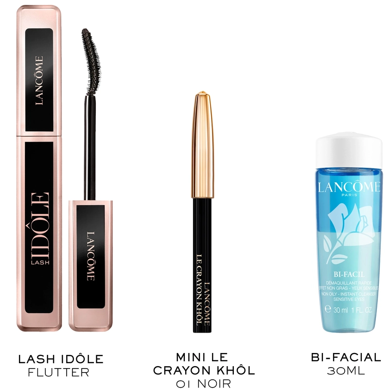 Lancôme Lash Idôle Mascara Routine Gift Set ger dig allt du behöver för att förbättra och vårda dina ögon på ett komplett och lyxigt sätt. Setet kombinerar effektiva produkter som arbetar tillsammans för ett strålande, definierat och välvårdat ögonområde. Lash Idôle Mascara lyfter och öppnar ögonen med sin böjda borste och ultralätta gelformula, vilket skapar en vacker solfjädereffekt och intensiv volym. Le Crayon Khôl ger sensuellt djup med sin krämiga, blandbara konsistens, perfekt för att definiera ögonen och framhäva din blick. Bi-Facil Makeup Remover tar försiktigt bort alla spår av smink, inklusive vattenfasta formler, utan att irritera huden, vilket lämnar ögonområdet fräscht och bekvämt. Detta set är perfekt för daglig användning och fungerar även som en omtänksam present till alla som vill lyfta sin ögonmakeup till en professionell nivå. Setet innehåller: - 1 st. Lancôme Lash Idôle Mascara 8 ml - 01 Glossy Black - 1 st. Lancôme Eyeliner Le Crayon Khôl 0,7 gr. - Svart - 1 st. Lancôme Bi-Facil Eye Makeup Remover 30 ml