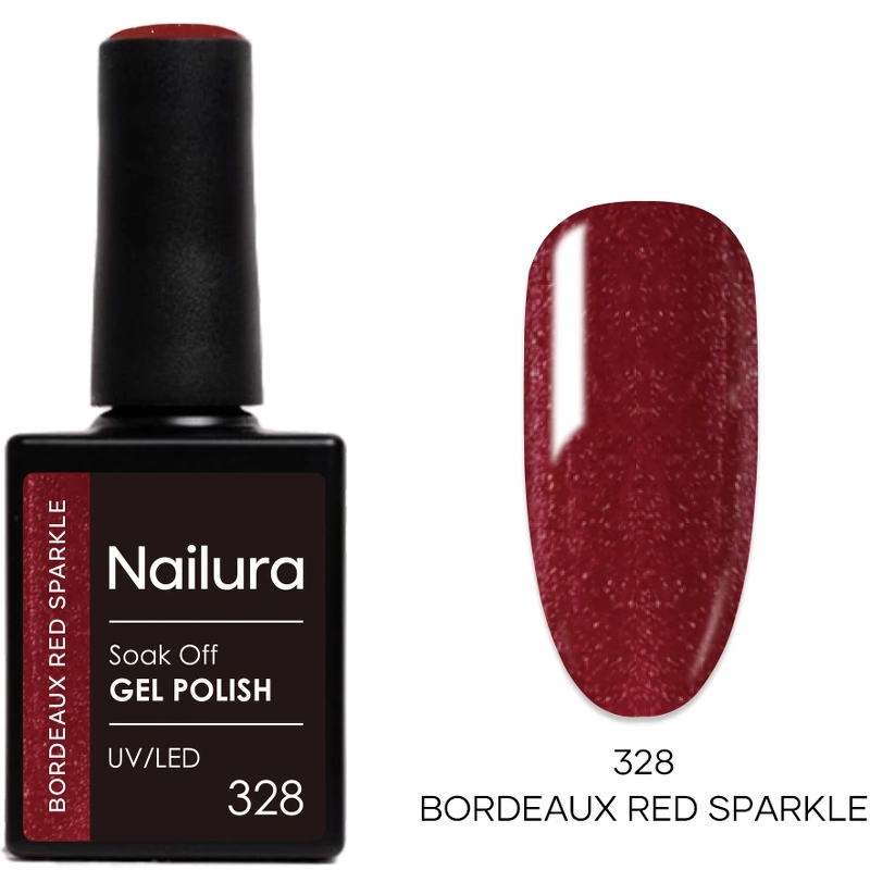 Nailura Gel Polish 10 ml - 328 Bordeaux Red Sparkle