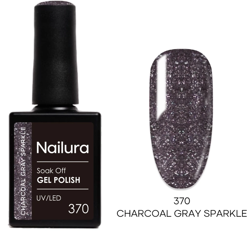 Nailura Gel Polish 10 ml - 370 Charcoal Gray Sparkle