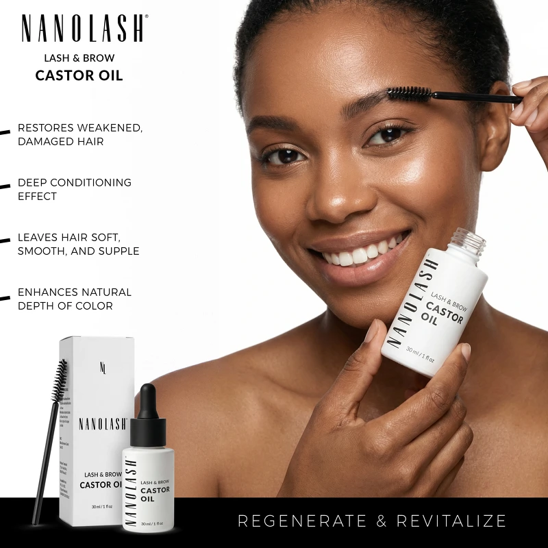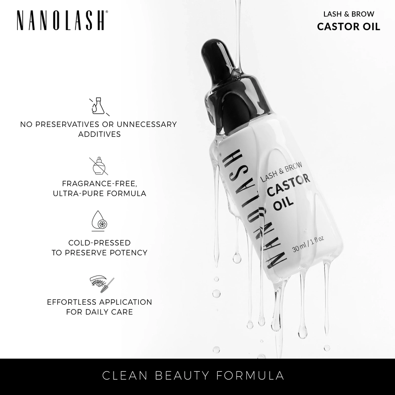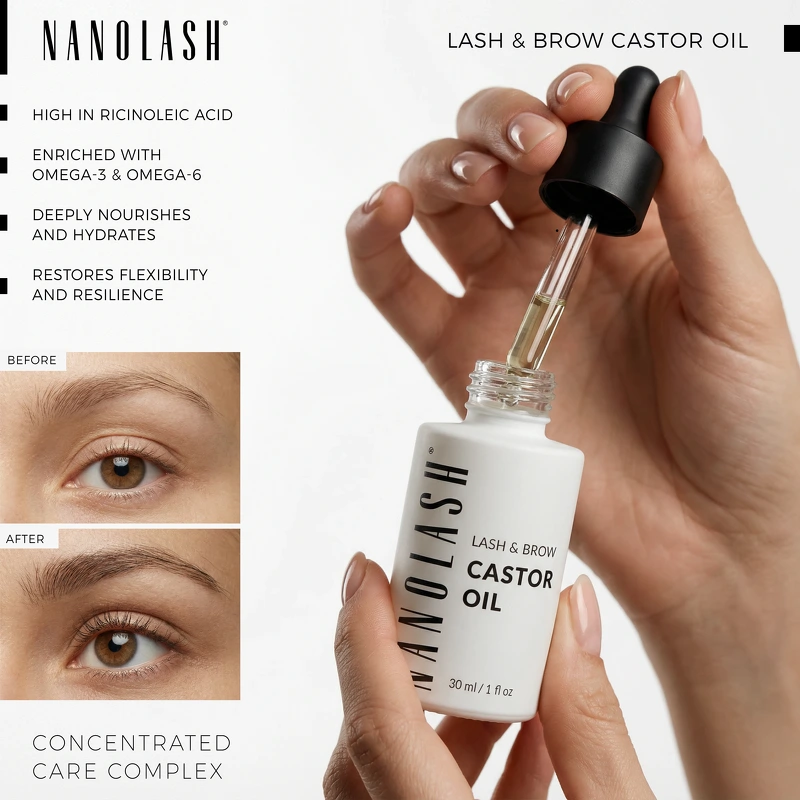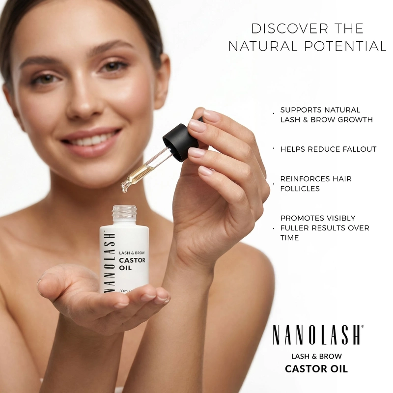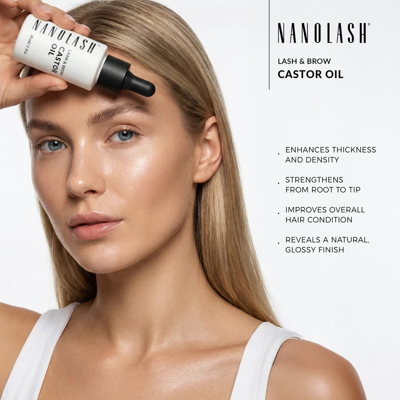 Nanolash Lash & Brow Castor Oil är en närande ögonbryns- och ögonfransolja som stärker, vårdar och främjar en hälsosam tillväxt för vackra och glänsande resultat. Ricinolja har varit enormt populär inom vård av ögonfransar och bryn i åratal, och dess renaste form ger de bästa resultaten. Nanolash Castor Oil är en kvalitetsolja rik på ricinolsyra och omega-fettsyror, kända för sina gynnsamma effekter som balsam för håret och för sin förmåga att göra håret starkare och friskare. Efter flera veckors regelbunden användning blir ögonfransar och ögonbryn fylligare, starkare och mindre benägna att skadas. Oljan fördjupar hårets färg naturligt, gör dem tjockare och stärker hårsäckarna, vilket hjälper till att minska håravfall och stödjer en hälsosam hårväxt. Den regenererar också hår som försvagats på grund av styling eller sminkborttagning, vilket återställer mjukhet, elasticitet och synlig glans. För bästa resultat, applicera en liten mängd olja på rena, torra fransar och bryn och fördela den försiktigt med en borste. Denna appliceringsmetod säkerställer jämn täckning så att de aktiva ingredienserna kan absorberas effektivt. Resultatet blir att fransar och bryn ser mer välvårdade ut med förbättrad textur och mindre risk för håravfall. Fördelar: - Bryn- och ögonfransolja - Ger näring åt fransar och bryn - Stärker håret - Minskar håravfall - Stödjer hälsosam hårväxt - Återuppbygger försvagat hår - Förbättrar hårets textur och glans - Ger ett hälsosammare utseende Användning: - De bästa resultaten får man vid regelbunden användning två gånger om dagen - morgon och kväll - En liten mängd räcker att applicera med en borste på rena, torra fransar och bryn Ingredienslista: Ricinus Communis fröolja