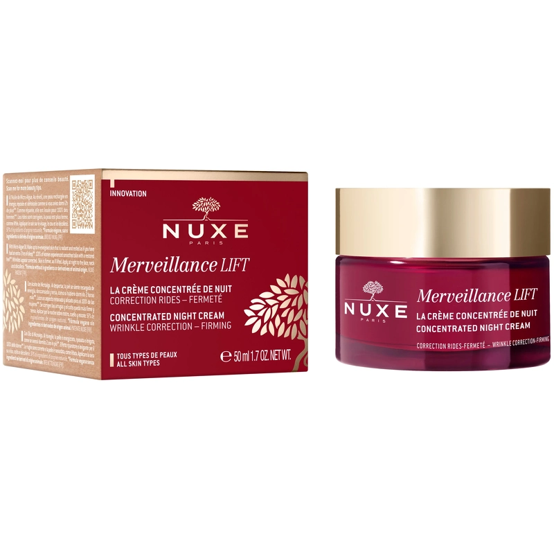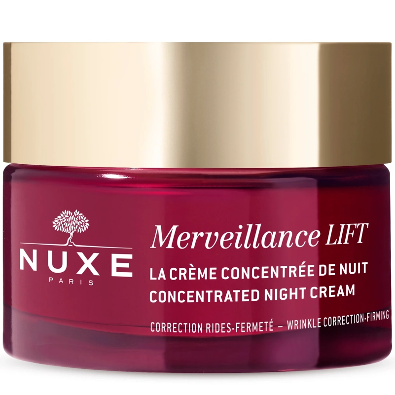Nuxe Merveillance Lift Night Cream är en koncentrerad anti-aging nattkräm för kvinnor 35+ som ger intensivvård medan du sover. Den hjälper huden att regenerera sig, så att du vaknar med en mer utvilad, strålande och pigg hud. Krämen är berikad med den potenta mikroalgoljan Chlorella Vulgaris, som stärker huden, slätar ut rynkor och ger en uppstramande effekt. Vid regelbunden användning ser huden mer lyft, len och ungdomlig ut. Samtidigt skämmer den bort sinnena med en elegant doft av vit mysk, magnolia och freesia, vilket gör din kvällsrutin extra behaglig. Fördelar: - Nattkräm - Anti-aging vård för natten - Stramar upp och minskar rynkor - Innehåller mikroalgolja - Ger en fastare och mer ungdomlig hud - Lämplig för alla hudtyper Användning: - Applicera på ren hud på kvällen - Använd i ansiktet och på halsen - Massera försiktigt in i huden - Undvik området runt ögonen - Låt verka över natten