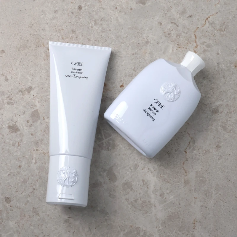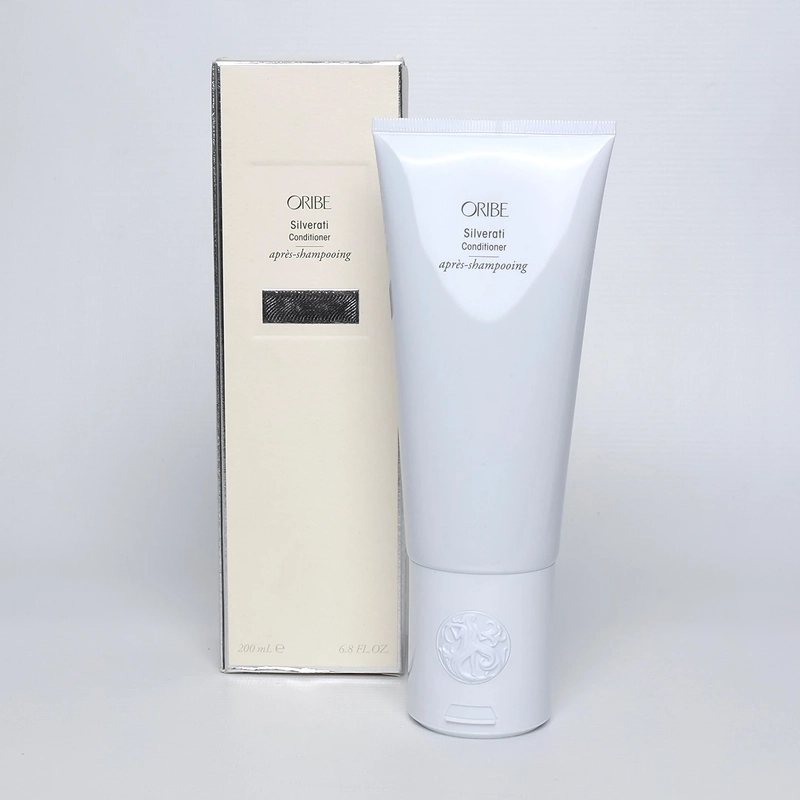 Oribe Silverati Conditioner är ett effektivt silverbalsam. Ge grått, vitt och kallt hår nytt liv med ett lyxigt balsam som kombinerar vård och glans i en effektiv formula. Detta intensivt återfuktande balsam är utformat för att fräscha upp matta toner och neutralisera oönskade gula toner, vilket lämnar håret klart, strålande och fullt av vitalitet. Den närande formulan återfuktar torrt och moget hår på djupet, samtidigt som den återställer elasticitet och smidighet i ömtåliga längder. Håret känns omedelbart mjukare, slätare och lättare att reda ut, medan ytan slätas ut för en silkeslen finish. Resultatet är friskare, mer livfullt hår med förbättrad flexibilitet, intensiv glans och en sval, klar ton - perfekt för dig som vill framhäva skönheten i grått, silver eller ljust hår med ett elegant och välvårdat utseende. Fördelar: - Balsam för grått och vitt hår - Neutraliserar gula toner - Ger intensiv återfuktning - Vårdar torrt och moget hår - Återställer elasticitet och smidighet - Gör håret lätt att kamma - Ger glans och klarhet Användning: - Applicera i vått, nytvättat hår - Fördela i längder och toppar - Låt verka i några minuter - Kamma igenom håret vid behov - Skölj noggrant - Använd regelbundet för bästa resultat