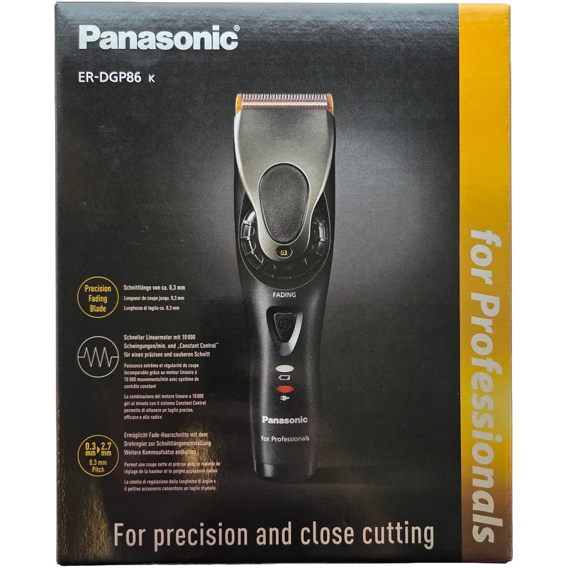 Med hårklipparen Panasonic ER-DGP86 kan du ta din hårklippning till nästa nivå. Denna klippare är speciellt utformad för professionella frisörer som kräver expertprecision och mångsidighet. Denna högpresterande hårklippare är utrustad med en kraftfull linjärmotor som ger en jämn och kraftfull klippning varje gång. Den är också utrustad med ett justerbart klipphuvud och sex olika kammar, så att du kan uppnå önskad längd och stil för alla hårlängder och texturer. Detaljer: - Hårtrimmer - Laddarehållare - Kamtillbehör (3, 4 mm) - Kamtillbehör (6, 9 mm) - Kamtillbehör (12, 15 mm) - Bladolja - Rengöringsborste - Hållare för tillbehör