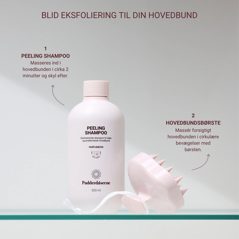 Puderburkarna Peeling Shampoo är ett exfolierande schampo som har en lugnande och djuprengörande effekt, och kan användas av alla med irriterad hårbotten. Det är särskilt bra för en fet hårbotten, såväl som för tonåringar med en stor konsumtion av hårvax. Detta schampo innehåller defenscalp, som är en multifunktionell ingrediens som bibehåller en frisk och flingfri hårbotten och minskar talgproduktionen. Innehållet av octopirox hjälper till att skapa en kliande hårbotten, medan den naturliga exfolieringen imercare 90P-Scrub tar bort mjäll och lämnar hårbotten ren och bekväm. Fördel: - Peeling schampo - Rekommenderas för alla med irriterad hårbotten - Idealisk för fet hårbotten - Bra för tonåringar med hög konsumtion av vax - Kan användas av både barn och vuxna - Har en lugnande och djuprengörande effekt - Innehåller defenscalp, octopirox och imercare 90P-Scrub - Upprätthåller en frisk och flingfri hårbotten - Minskar talgproduktionen - Motverkar mjäll och klåda - Lämnar hårbotten ren och bekväm - Producerad och utvecklad i Danmark - Parfymfri - XL storlek Ansökan: - Skaka flaskan ordentligt - Massera in schampot i ca. 2 minuter - Skölj noggrant med vatten Ingredienslista: Aqua, Sodium Coco-Sulfate, Perlite, Cocamidopropyl Betaine, Coco-Glucoside, Glycerin, Epilobium Angustifolium Flower/Löv/Stam Extract, Acrylates/Palmeth-25 Acrylate Copolymer, Piroctone Olamin, Sodium Bensoat, Sodium Metabisulfite, Citron Acidethanol.