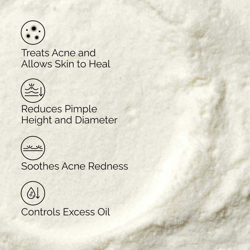 Säkerhetsinformation | Endast för utvärtes bruk. Rådfråga läkare före användning om du har svår akne. Hudirritation och torrhet kan förekomma oftare om du använder flera akneprodukter samtidigt. Om irritation uppstår, använd endast en produkt åt gången. Sluta använda och kontakta läkare om ingen förbättring ses inom 6–8 veckor. Förvaras utom räckhåll för barn. Vid förtäring, kontakta Giftinformationscentralen eller sök omedelbart läkarvård. Undvik kontakt med ögonen. Vid kontakt, skölj noggrant med vatten. Använd endast på områden med akne. Använd inte på skadad hud eller stora hudområden. Sluta använda och kontakta läkare om svår irritation, sveda eller klåda uppstår. Mild sveda eller klåda kan uppstå vid applicering. Undvik att andas in pulvret. Rådfråga läkare före användning om du är gravid eller ammar. |